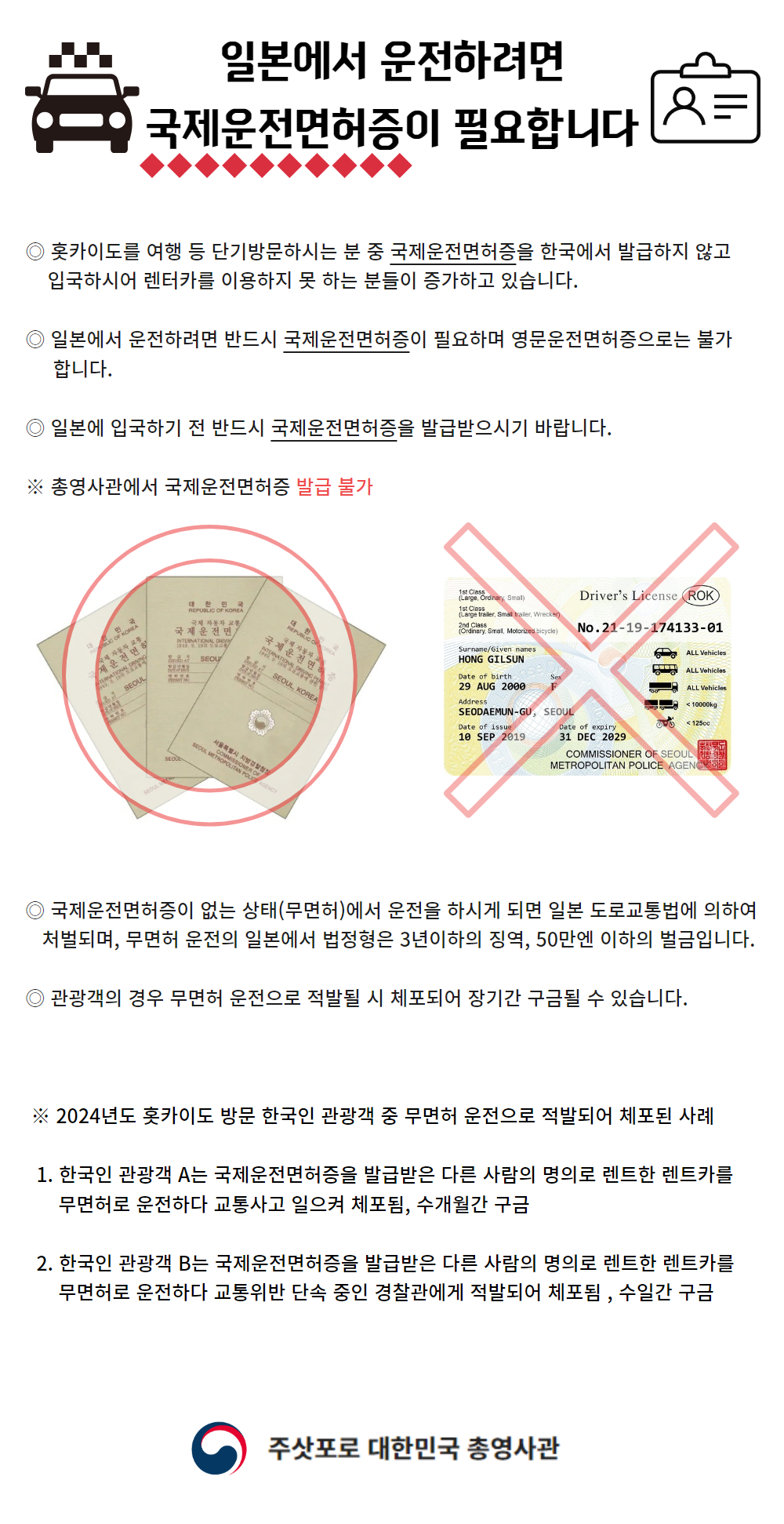 일본에서 운전하려면 국제운전면허증이 필요합니다